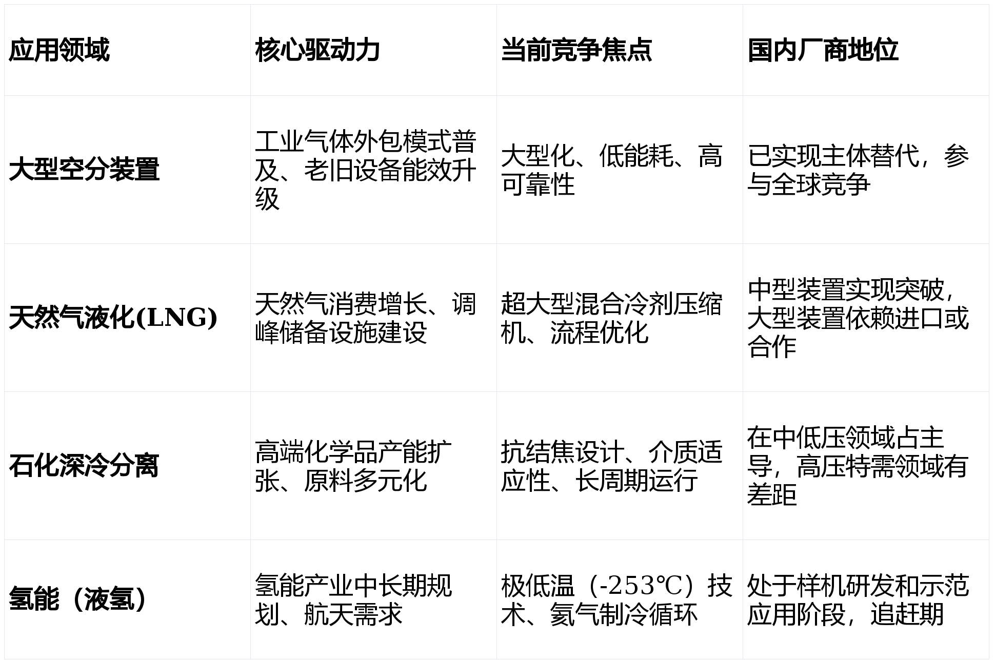 :在大型、高端应用领域(如百万吨级LNG生产线、特大型空分),由国际巨头(如西门子、阿特拉斯·科普柯、曼恩)和国内少数顶尖企业(如陕鼓动力、沈鼓集团、杭氧股份)主导。在中小型、标准化程度稍高的领域,则存在大量专注于细分市场的国内民营企业。